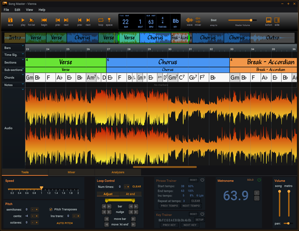 Purchased and trial versions of the software are the same. When you purchase Song Master, you Unlock it to the full version by registering it within the app. You can register it when you first start Song Master or from the Help menu. Your registration key is the user email and password that you used when you purchased Song Master.